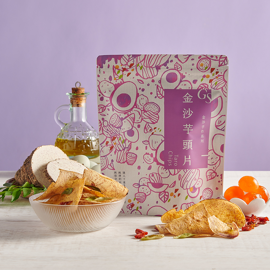 GS曼貫砲獨家研發金沙醬+精選新鮮芋頭組成的唰嘴美味零嘴,深受顧客喜愛與歡迎,以烘烤方式製成,酥脆度滿點!傳統芋頭片遇上南洋風味金沙醬,出乎意料地搭,推薦給喜歡嚐鮮或是熱愛芋頭的朋友!